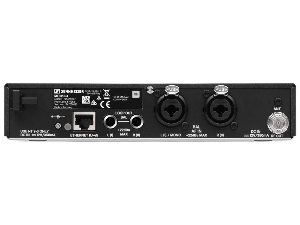 Vysielač bezdrôtového systému evolution wireless IEM G4 má okrem vlastností prevzatých zo systému G3 zvýšený vysielací výkon pre ešte lepšie pokrytie celého priestoru. Systém má 20 skupín frekvencií s 16 predvoľbami pre okamžité použitie a 1 skupinu s možnosťou naladenia akejkoľvek frekvencie v danom rozsahu (1680 možností).