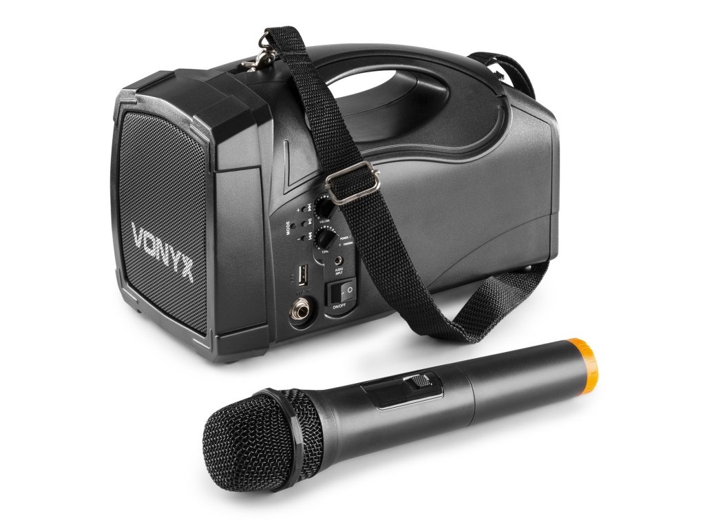 Ľahký a kompaktný prenosný reprobox vrátane UHF bezdrôtového mikrofónu. Môže byť použitý cez napájací zdroj alebo dobíjaciu vstavanú batériu. Môže byť umiestnený na rovnom povrchu, pripevnený cez rameno a prenášaný v ruke, pretože sa jedná o ľahký produkt. Vhodné pre vnútorné aj vonkajšie aplikácie, ako je výuka, konferencie, podpora predaja, sprievodca atď., všade tam, kde potrebujete zvýšiť hlas.