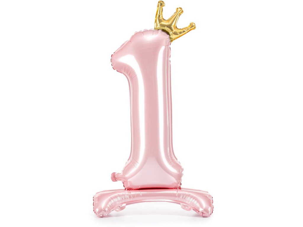Stojaci balónik z metalickej fólie číslo "1" vo svetloružovej farbe s korunkou v zlatej farbe, veľkosť pred nafúknutím cca 103 cm (40,5''), veľkosť po nafúknutí 84 cm (33''). Nafúknite vzduchom.