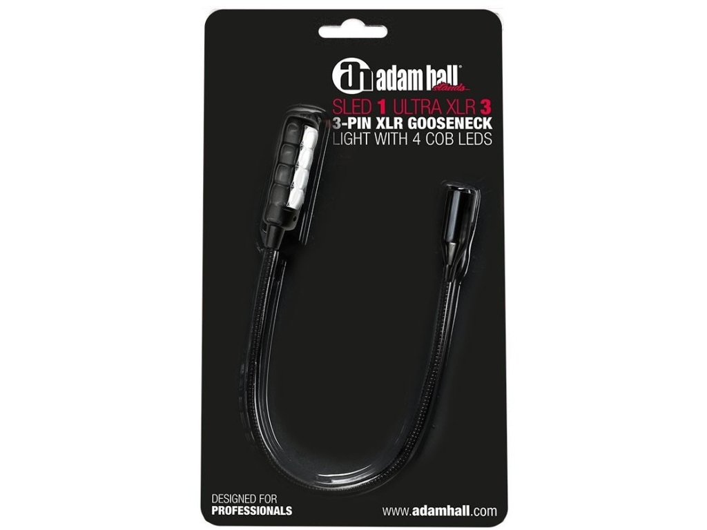 SLED 1 ULTRA XLR 3 je matne čierne svetlo na husacom krku so 4 extra jasnými bielymi LED COB a 3-kolíkovým konektorom XLR, ktoré funguje na vyhradených 12-voltových konektoroch pre pracovné svetlo a 48-voltových fantómových vstupoch pre mikrofóny. Husací krk s dĺžkou 300 mm je ľahko ohybný, napriek tomu zostáva na mieste, kam ho ohnete, vypínač napájania je pohodlne umiestnený na hornej strane svietidla.