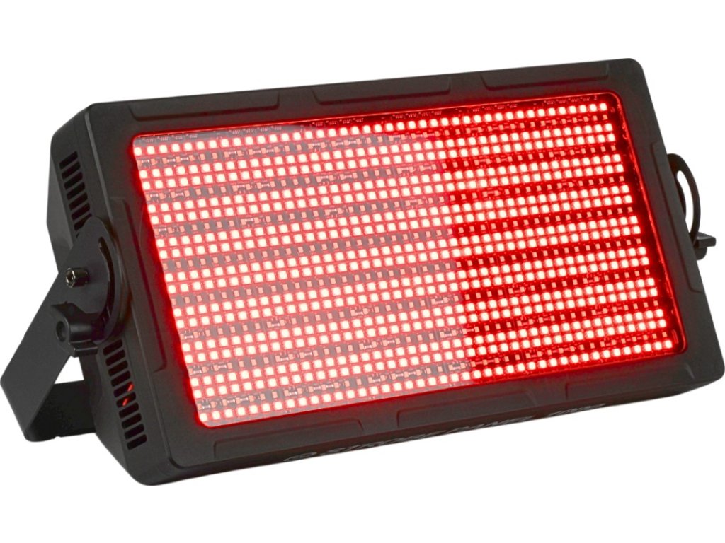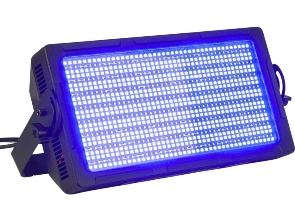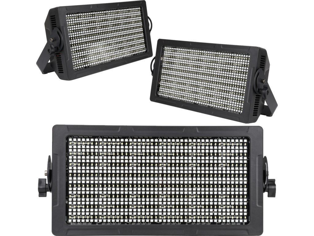 Light4Me Strobe Panel 1000 je výkonný LED stroboskop, ktorý sa skvele hodí na pódiá, do klubov, na koncerty a eventy. Vďaka 1008 LED diódam (672x0,2W RGB - červená, zelená, modrá - SMD5050 + 336x0,5W CW - studená biela s farebnou teplotou 6000K - SMD2835) v 48 sekciách zabezpečuje intenzívne svetelné efekty, ktoré obohatia každú párty. Nastaviteľná pracovná frekvencia (0-30 Hz) a rôzne možnosti ovládania (automatická prevádzka, prostredníctvom protokolu DMX alebo manuálne) umožňujú plnú kontrolu nad efektmi. Light4Me Strobe Panel 1000 je zariadenie, ktoré vyniká vysokou svetelnou účinnosťou (145 lm/W), silným svetelným tokom (7296 lm), skvelým indexom podania farieb (85) a širokým uhlom vyžarovania (120°), vďaka čomu sa osvedčí všade tam, kde je potrebné spektakulárne scénické osvetlenie.