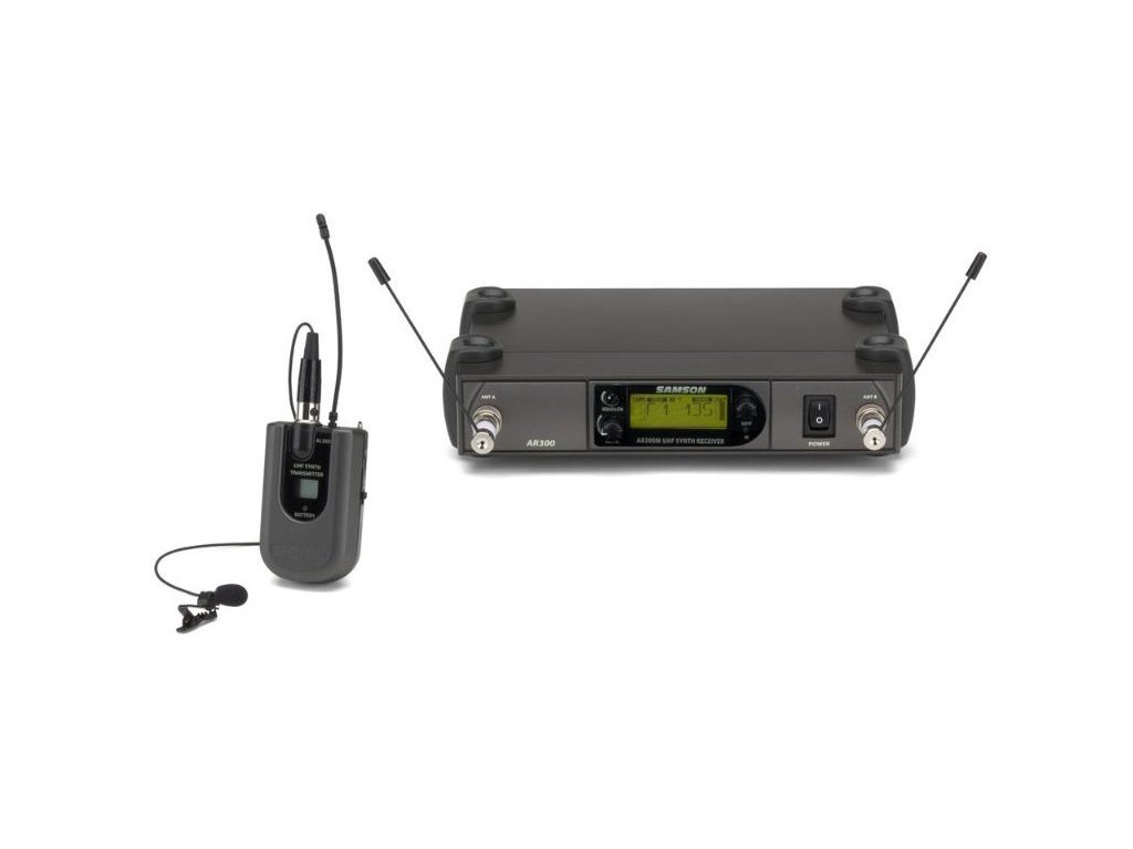 Bezdrôtový systém s klopovým mikrofónom.