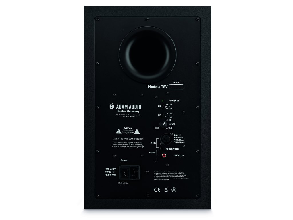 ADAM Audio T8V je nový dostupný dvojpásmový nearfield monitor navrhnutý najmä na produkciu hudby s výrazným basovým základom (techno, dub, hip hop, reggae a podobné). Je vhodný pre malé aj stredné domáce štúdiá a kontrolné miestnosti.