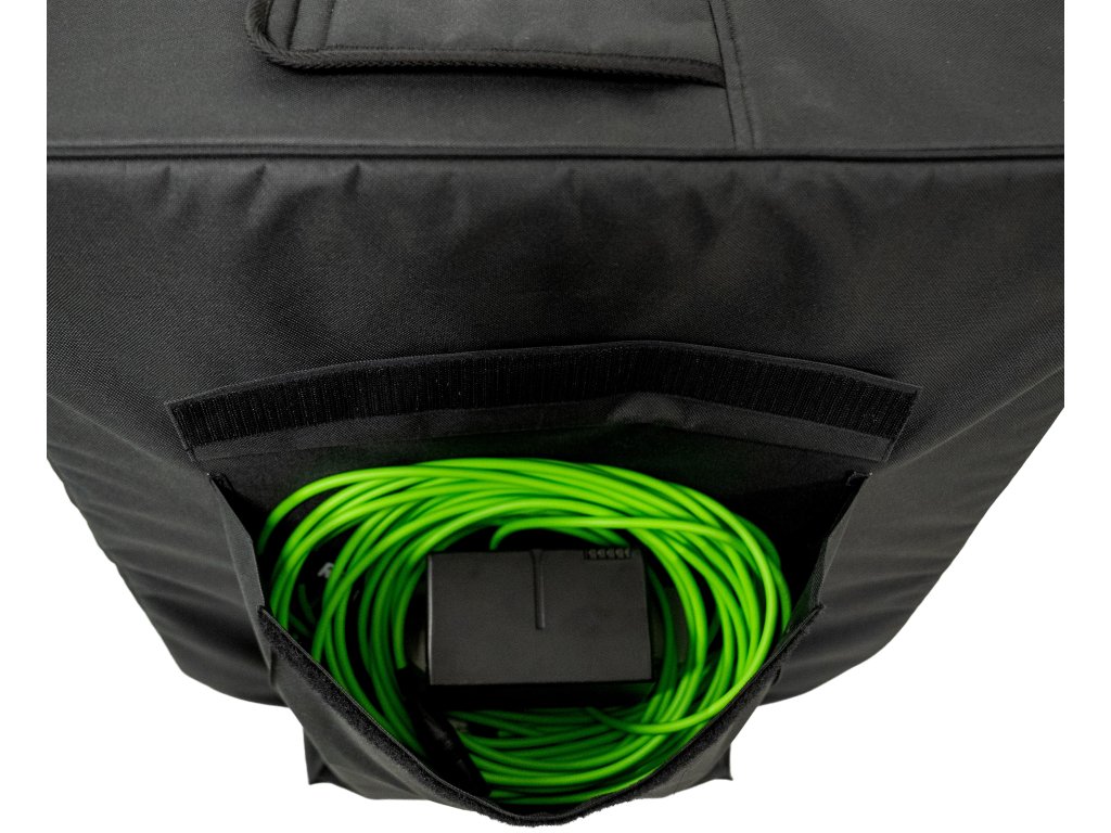 Okrem hlavnej ochrannej funkcie disponuje aj praktickým prídavným vreckom, kam ľahko uložíte všetko potrebné príslušenstvo, ako sú káble, mikrofóny alebo náhradné batérie. Špeciálne navrhnutý otvor umožňuje ľahký prístup k rukoväti subwoofera pre pohodlnú manipuláciu.