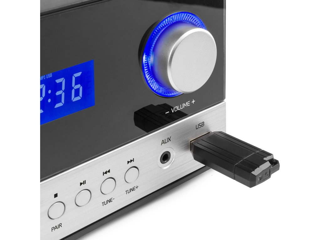 Toulon Micro HiFi System je kompaktný stereo systém vybavený dvojicou bassreflexových reproduktorov. Prehrávajte svoje obľúbené hudobné zoznamy skladieb pomocou zariadení vrátane MP3, smartfónu, tabletu atď. To je možné prostredníctvom BT streamovania alebo pripojenia Aux In. Prehrávač CD s horným plnením prehráva štandardné disky CD aj disky CD vytvorené na vašom počítači. Okrem funkcie CD je tu digitálny FM tuner s multifunkčným LCD displejom s modrým podsvietením. Toulon ponúka elegantný, tradičný dizajn, ktorý mu umožňuje bezproblémovú integráciu s mnohými rôznymi štýlmi v domácnosti alebo kancelárii.