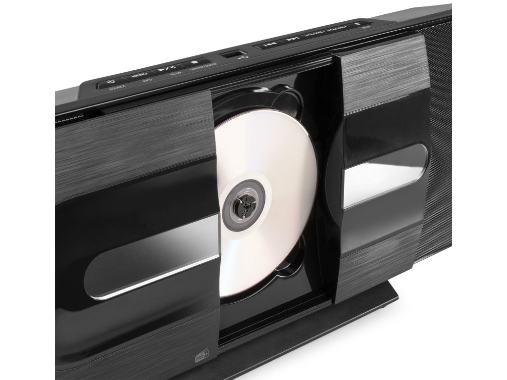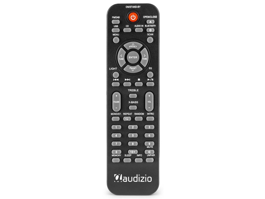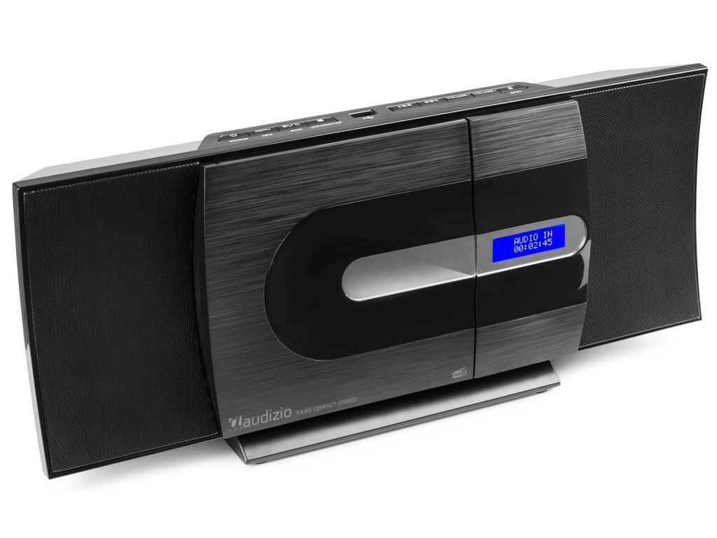 Tours Stereo HiFi System je kompaktná, štýlová jednotka s nespočetnými možnosťami prehrávania – či už prehrávate hudbu z vašich obľúbených CD, MP3 albumov alebo najnovšie správy z digitálnych DAB+ alebo miestnych rozhlasových staníc FM. Tenký CD prehrávač je integrovaný do vertikálne stojaceho alebo visiaceho predného panelu, vďaka čomu je celý systém hlboký iba 10 cm. Stereo systém bez námahy rozpozná súbory MP3 a prehrá ich v dobrej kvalite. Pre prispôsobenie kvality zvuku vášmu individuálnemu vkusu ponúka Audizio extra funkciu X-Bass pre zdôraznenie basov a funkciu ekvalizéra s východiskovým nastavením Classic, Pop, Jazz a Rock. Vstup AUX je možné ľahko pripojiť k externému zariadeniu, ako je domáci PC, smartfón, tablet alebo notebook. Pomocou dodaného diaľkového ovládača môžete ovládať všetky funkcie bez toho, aby ste museli vstať zo svojho obľúbeného kresla.