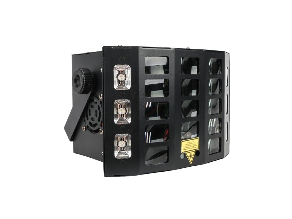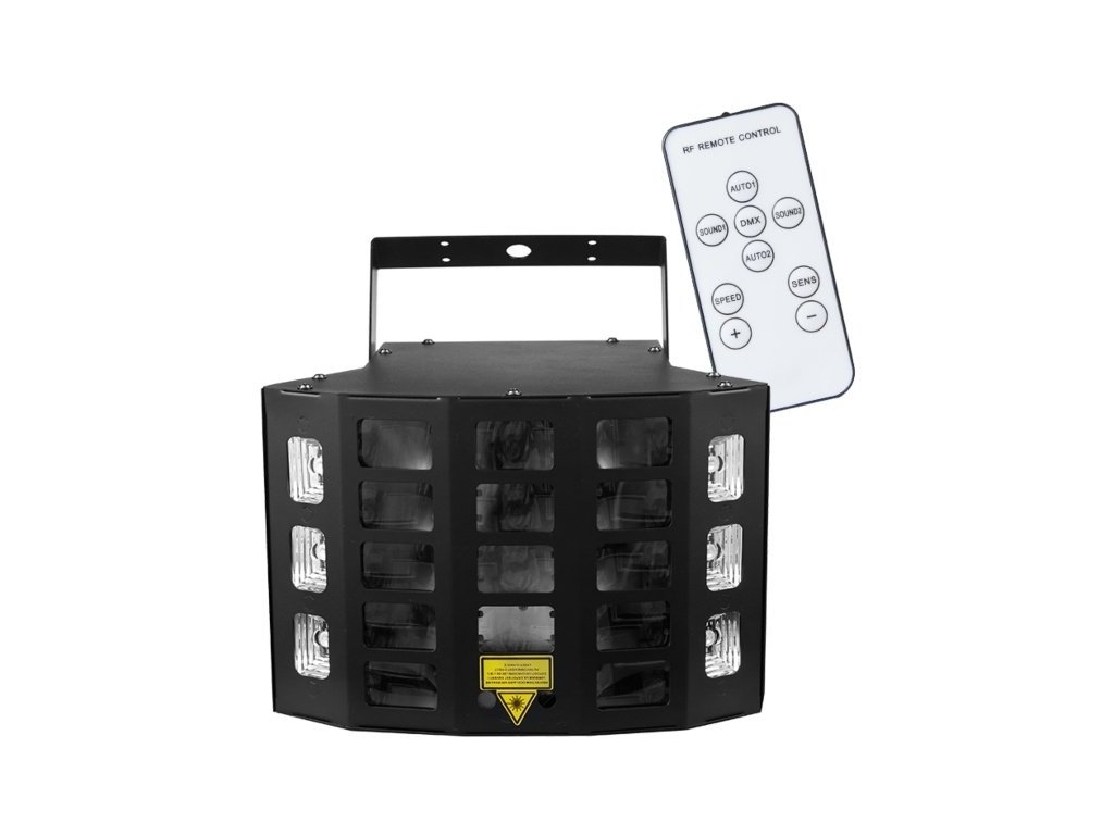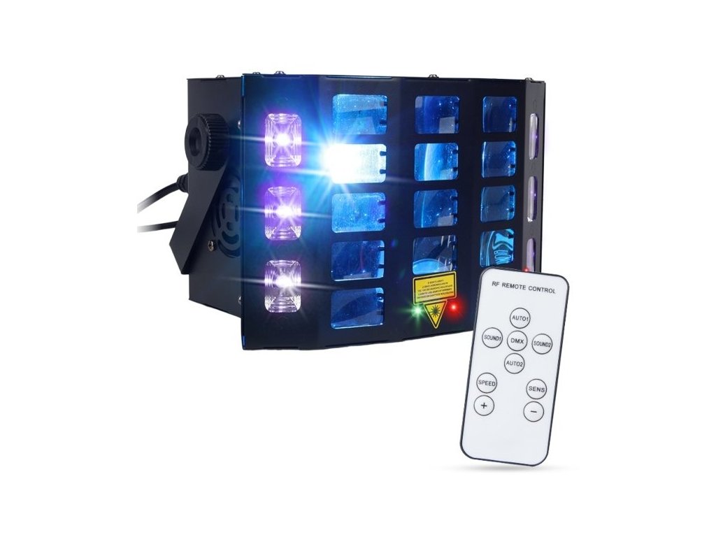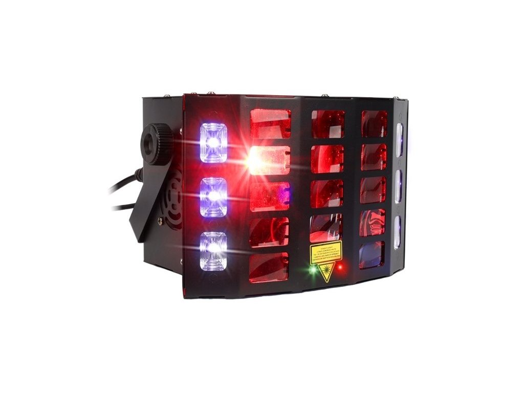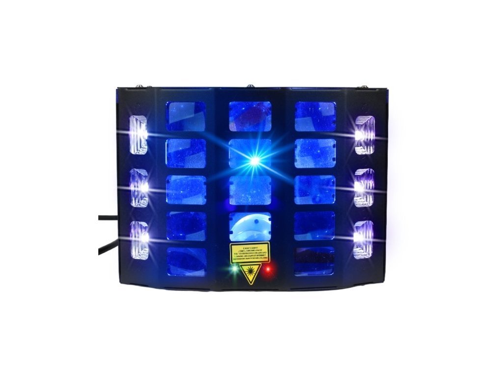 - Zdroj svetla: 2x15W RGBW LED + 6x6W UV+W LED + červený laser (120mW) + zelený laser (30mW)