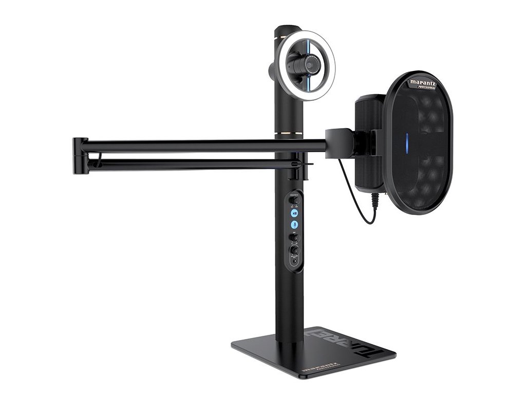 Marantz Professional predstavuje Turret, unikátny all-in-one streamovací systém pre náročných. Ide o HD webkameru (kompresia videa H.264) vybavenú LED prstencom (teplá aj studená biela), kondenzátorovým mikrofónom s integrovaným 48kHz/16-bit zvukovým rozhraním a prídavným pop filtrom. Všetko vyššie uvedené nájdete v ergonomickej horizontálnej stolnej konštrukcii, ktorá Vás vybaví všetkými nástrojmi pre vlogging, Podcasting, gaming, Skype a ďalšie. Dobrý dojem zanecháva tiež vynikajúce celokovové spracovanie.