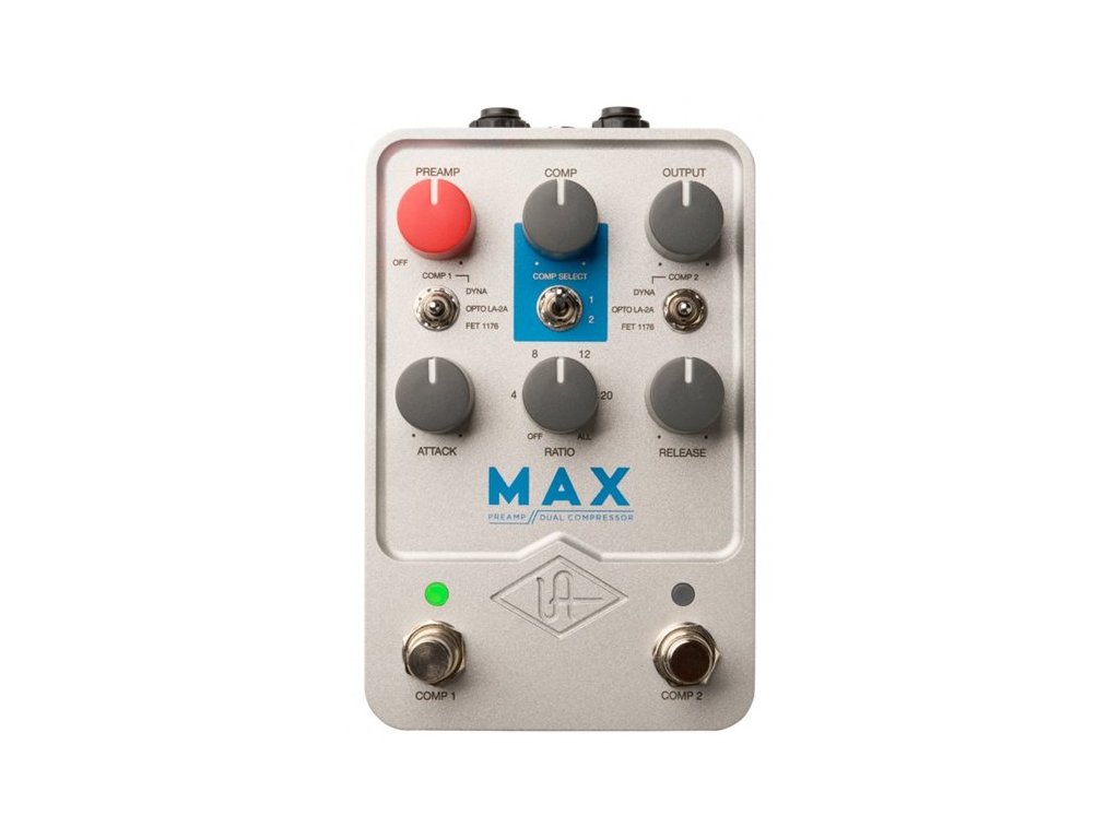 UAFX MAX Preamp & Dual Compressor je gitarový stomp box, ktorý vám umožní návrat k poctivému vintage zvuku 60. rokov. Jeho jednoduchá konštrukcia s dvoma nožnými spínačmi umožní kombinovať dve kompresné jednotky, z ktorých každá vie simulovať tri typy populárnych vintage kompresorov. Aktivácia jednotlivých kompresných jednotiek prebieha stlačením nožného spínača aj počas hrania. Vďaka jednoduchému intuitívnemu nastaveniu oboch efektov pomocou šestice potenciometrov a troch prepínačov nepotrebujete žiadne presety. K profesionálnemu špičkovému vintage soundu dospejete behom niekoľkých sekúnd.