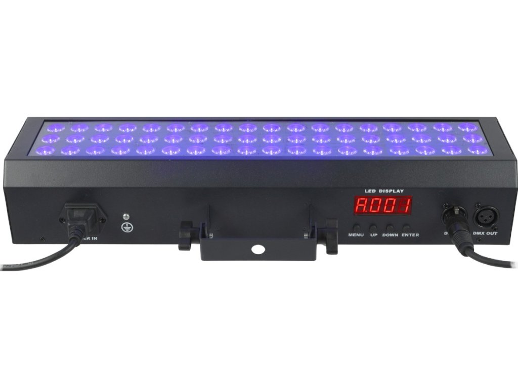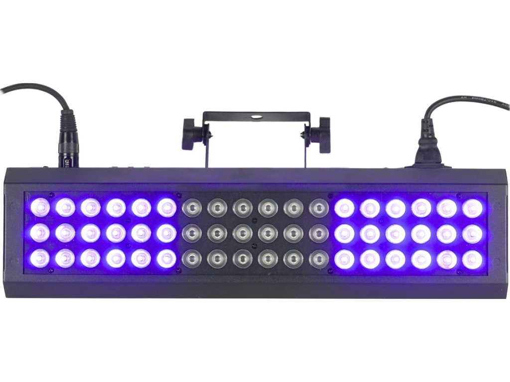 - Typ zariadenia: javiskový LED DMX svetelný efekt s montážnym držiakom- Svetelný zdroj: 54x3W UV LED