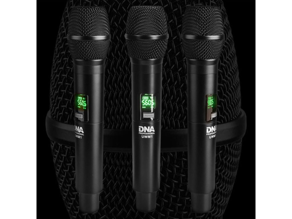 DNA UWM 1 je veľmi jednoducho použiteľný bezdrôtový mikrofónny systém, ktorý obsahuje bezdrôtový dynamický mikrofón a malý kompaktný prijímač UHF, ktorý sa zapája priamo do zosilňovača alebo mixážneho pultu (6,35 mm jack). Súprava pracuje v pásme UHF na frekvencii 560 - 590 MHz. Je ideálny pre uvádzačov, zabávačov alebo na karaoke, využitie nájde aj v rôznych typoch kultúrnych a vzdelávacích inštitúcií.