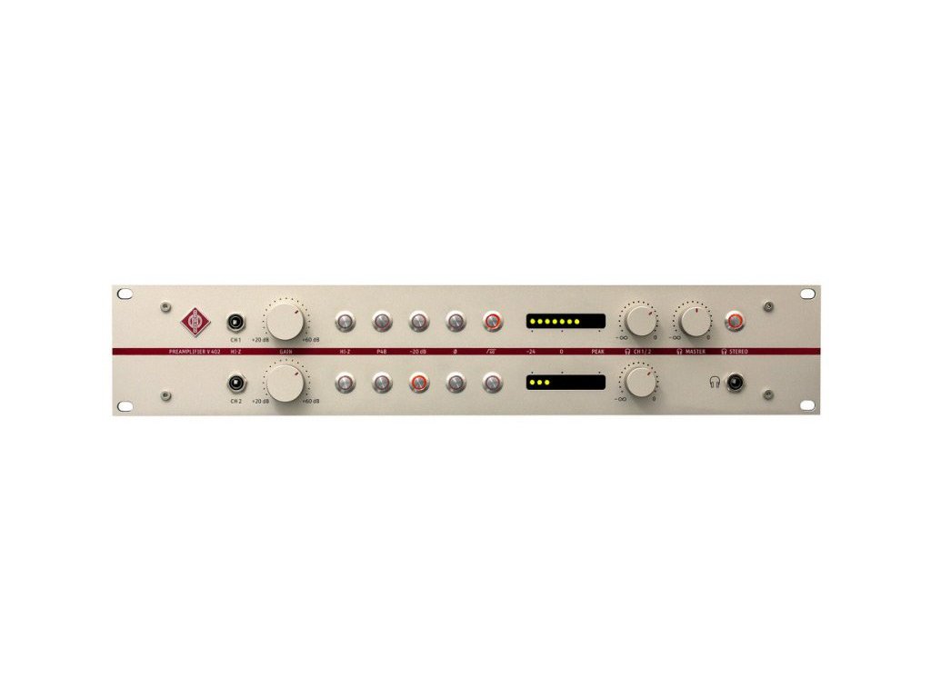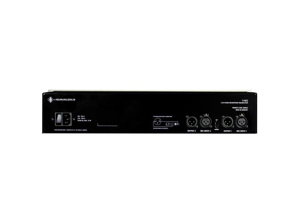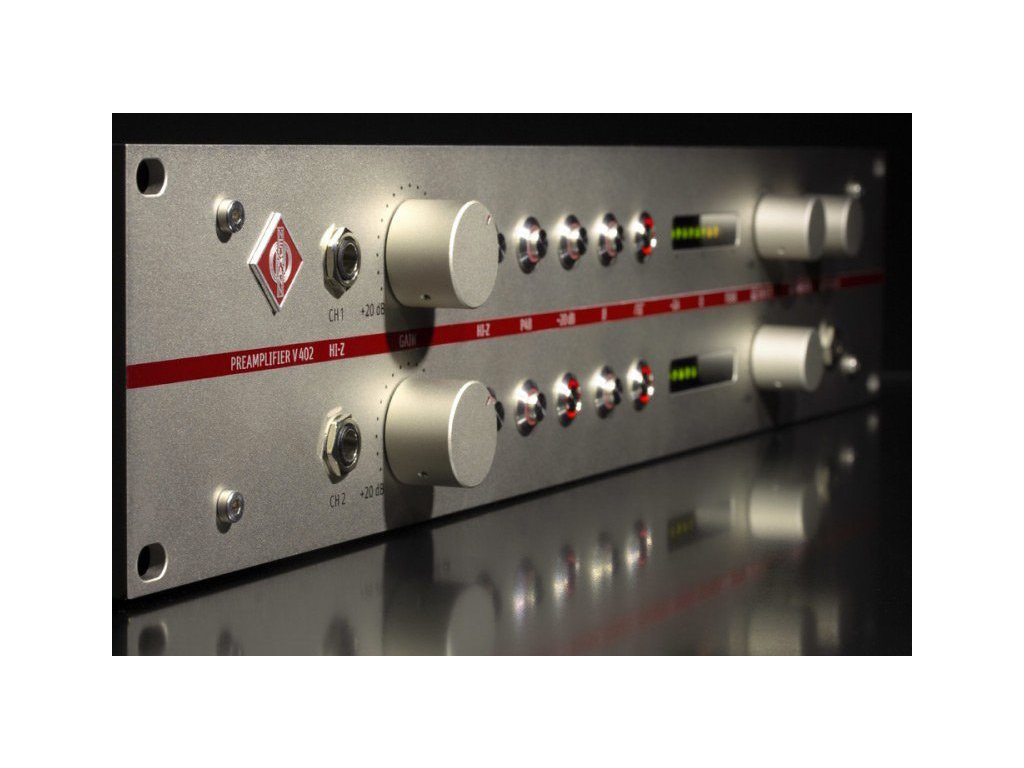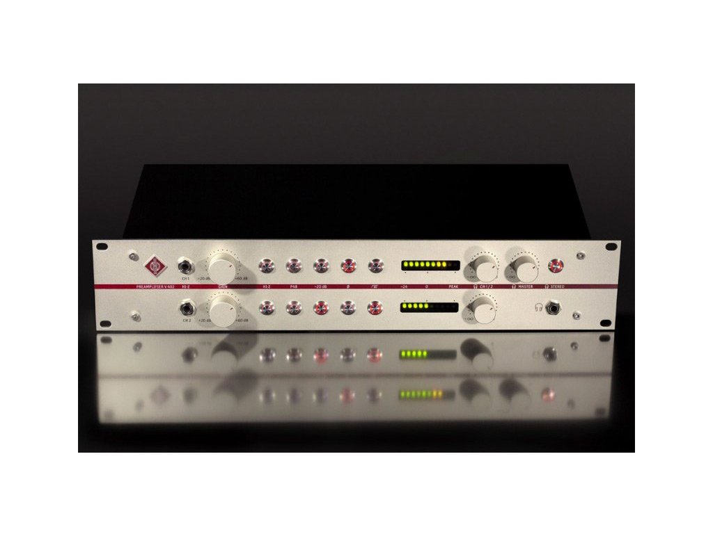 Mikrofónový predzosilňovač kategórie "state-of-the-art" s vstupnými konektormi DI a slúchadlovým zosilňovačom štúdiovej kvality. V 402 je dokonalý doplnok všetkých mikrofónov Neumann, odhaľujúci pravý zvuk vokálov aj hudobných nástrojov. Použité beztransformátorové obvody prispievajú k maximálnej čistote a priezračnosti zvuku.