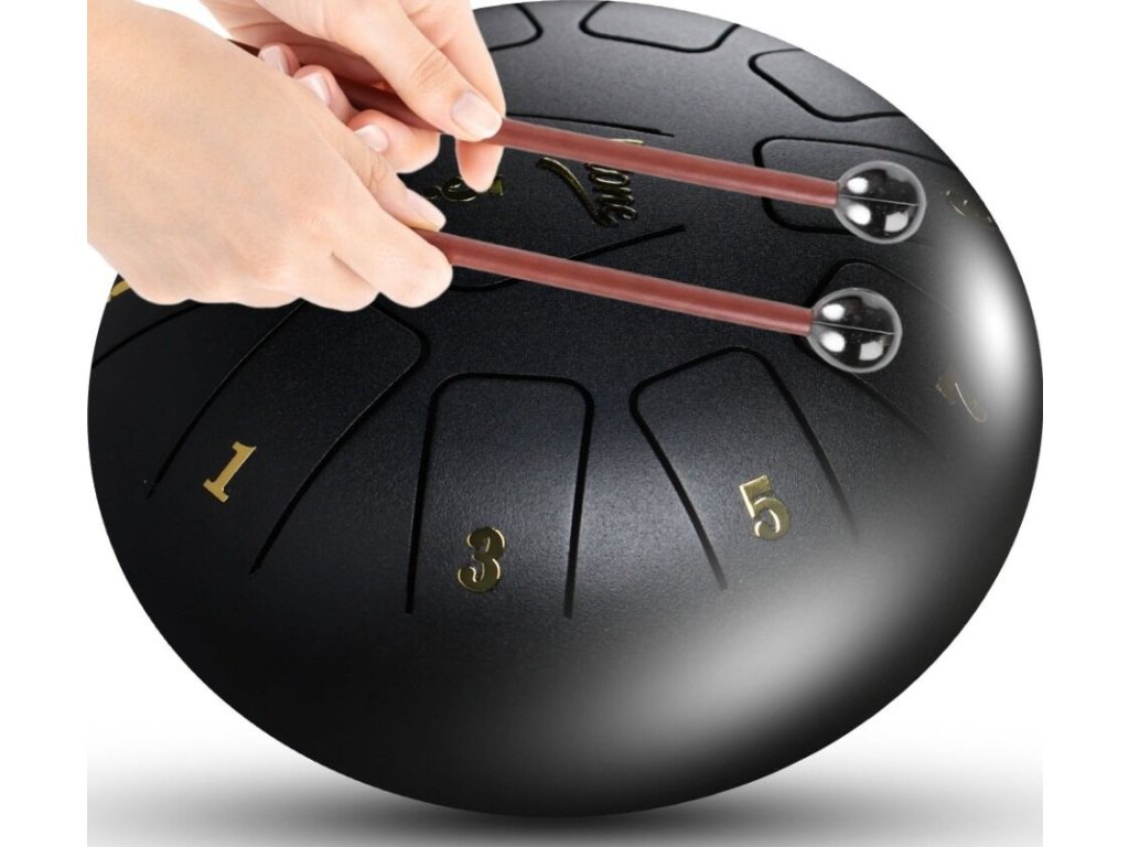 Vďaka 11 tónom môžete vytvárať harmonické kompozície aj bez znalosti nôt. Oceľ s prímesou medi zaisťuje jasný, dlhý dozvuk a stabilitu ladenia. Stačí jemný úder paličkou alebo hra prstami pomocou nástavcov, aby sa priestor naplnil pokojnou vibráciou podporujúcou koncentráciu a uvoľnenie. Je to vynikajúca voľba pre učiteľov rytmiky, terapeutov, inštruktorov jogy aj rodičov rozvíjajúcich hudobný talent dieťaťa.