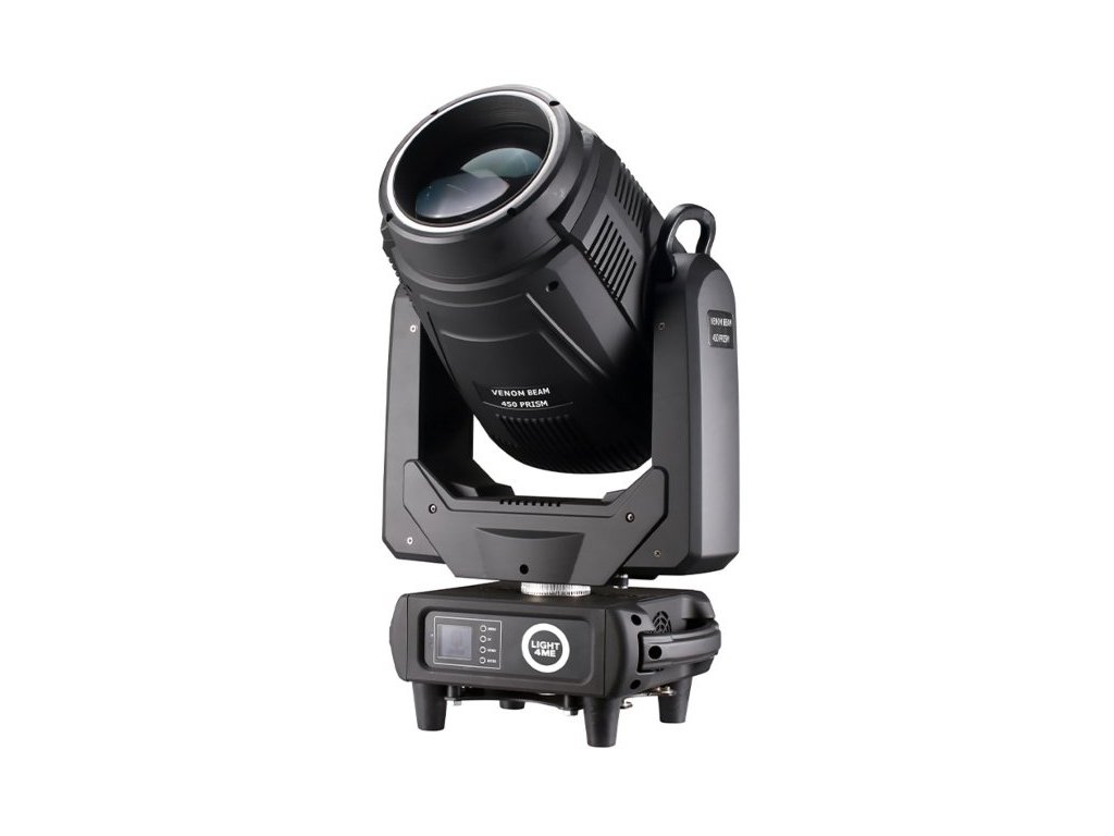 LIGHT4ME VENOM BEAM 450 PRISM je profesionálna LED pohyblivá hlava vybavená výkonným 450W svetelným zdrojom, ktorý poskytuje koncentrovaný lúč s uhlom 3°. Hlava je vybavená farebným voličom s 8 filtrami a dvoma nezávislými gobo diskami, z ktorých jeden obsahuje 14 statických gobos a druhý 8 rotujúcich. Okrem toho sú k dispozícii dva hranoly, ktoré je možné otáčať a prekrývať, čo umožňuje vytváranie rôznych svetelných efektov. Táto hlava je ideálna na použitie v hudobných a divadelných predstaveniach, rovnako ako v tanečných kluboch, na diskotékach alebo počas svadieb.