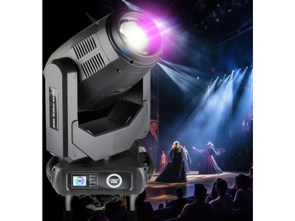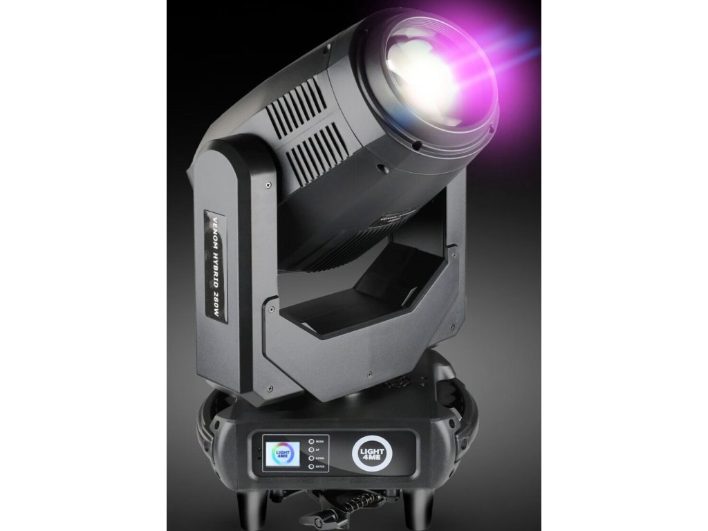 Light4Me Venom Hybrid 280W je pokročilá hybridná otočná hlava typu beam spot wash, navrhnutá pre koncertné pódiá, hudobné kluby, vonkajšie akcie, divadlá a požičovne osvetľovacej techniky. Ponúka precíznu kontrolu svetla, veľmi široký rozsah efektov a plynulý pohyb, čo sa premieta do absolútnej slobody pri vizuálnej tvorbe. Je to riešenie, ktoré ocenia osvetľovači, DJi, pódioví technici aj organizátori akcií, ktorí očakávajú spoľahlivosť a flexibilitu v jednom zariadení.