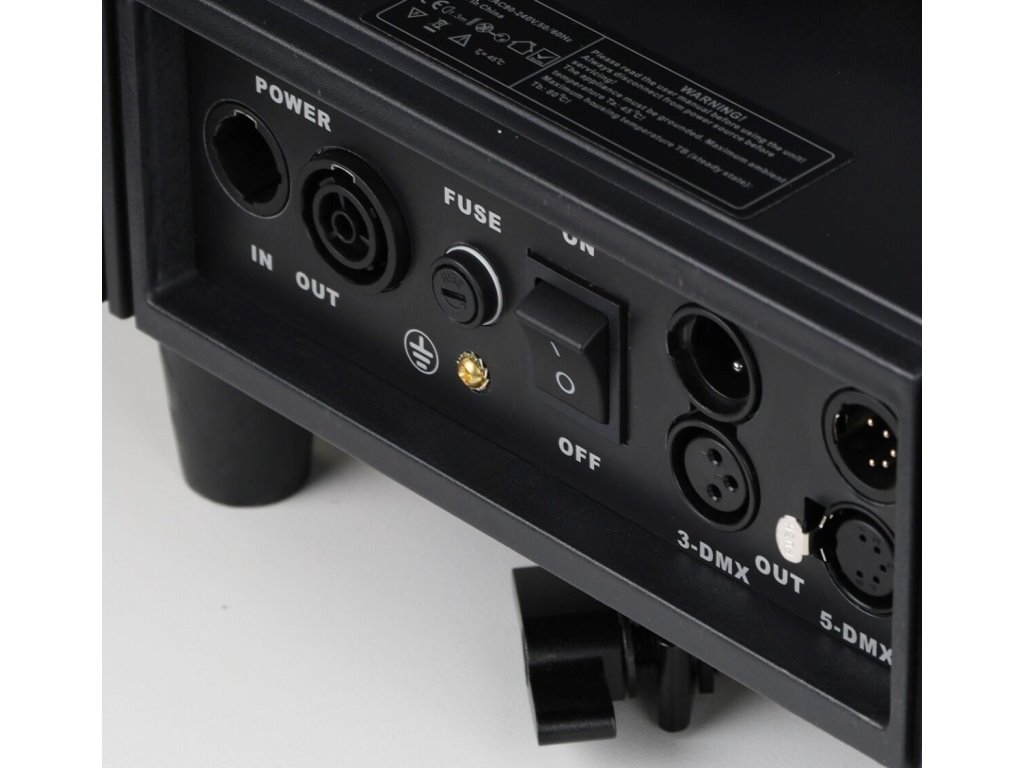 - DMX dátové konektory: 3-pin / 5-pin XLR samec (vstup) / samica (výstup)