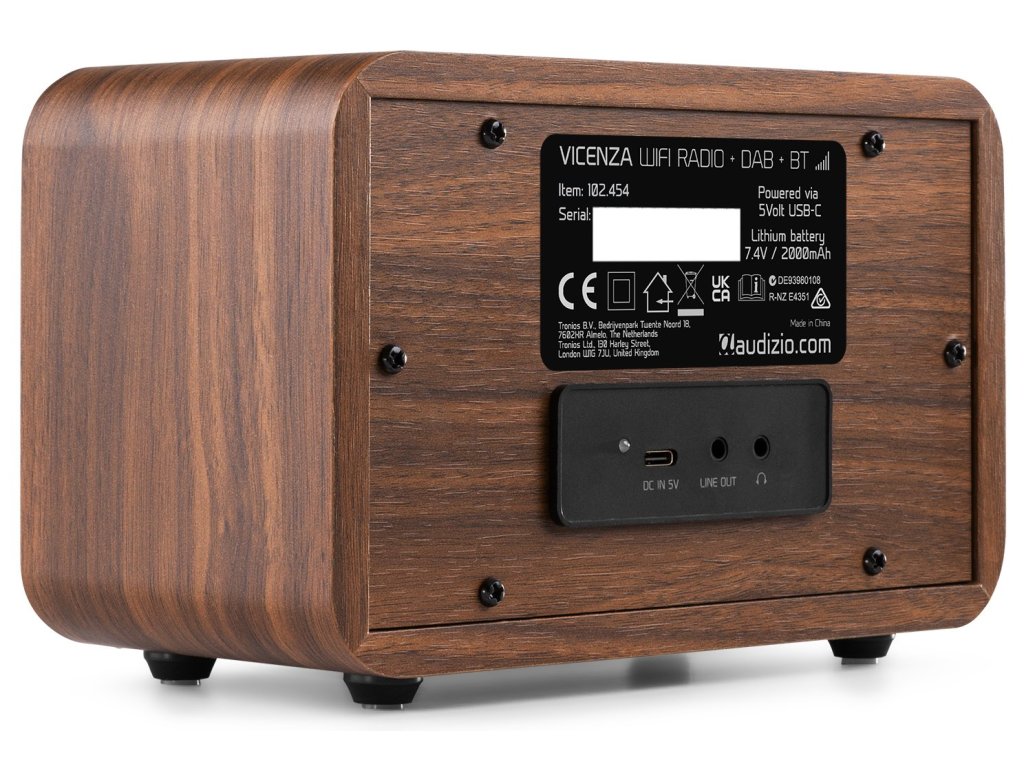 Vicenza internetové rádio s Wi-Fi, DAB+ a batériou, drevo