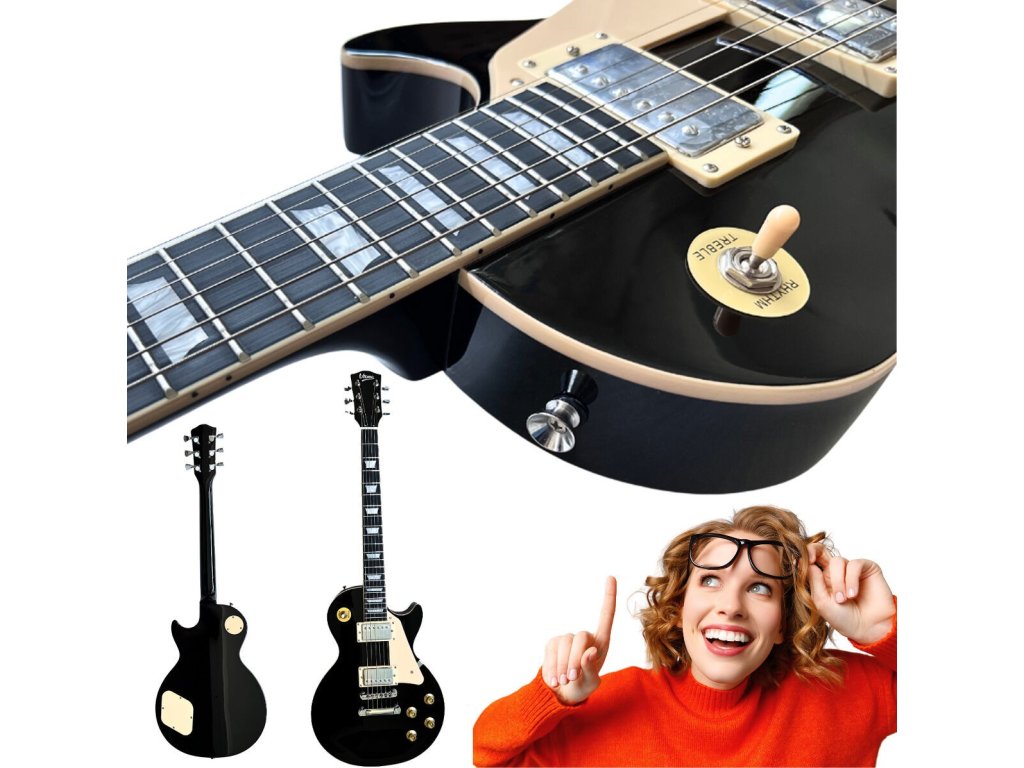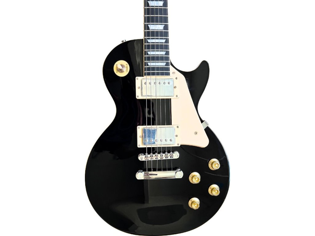 V-TONE VLP1 BK je elektrická gitara, ktorá splní očakávania začiatočníkov aj skúsených hudobníkov. Vďaka klasickej konštrukcii typu Les Paul a veľkosti 4/4 ponúka mimoriadny komfort pri hraní a skvelú kvalitu zvuku. Telo s čiernym lesklým povrchom je vyrobené z dreva okoume, krk z mahagónového dreva, pickguard z ABS plastu vo farbe slonovej kosti, výrez typu cutaway a hmatník z čierneho HPL zaisťujú inštrumentu nielen estetiku, ale aj vysokú odolnosť.