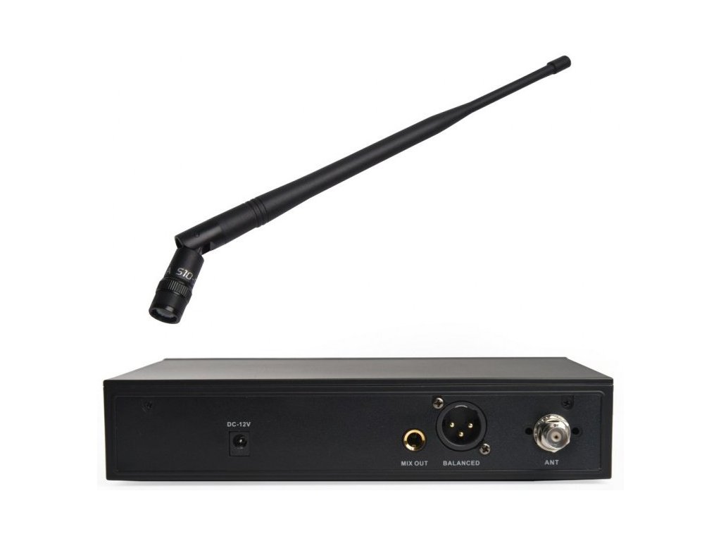 Druhou časťou systému je prijímač rádiových vĺn s frekvenčným rozsahom 518 až 542 MHz. Na zadnej strane skrine je XLR výstup, jackový výstup (1/4 ”), napájacia zásuvka a BNC anténny konektor. V prednej časti je umiestnený vypínač, potenciometer hlasitosti, infračervený prijímač a ovládací panel s LCD displejom. Ukazuje aktuálne systémové parametre, ako je úroveň signálu RF / AF, nastavenie frekvencie prijímača, zvolený prevádzkový kanál a či je mikrofón aktuálne zapnutý alebo vypnutý. Pomocou tlačidiel Hore, Dole a Nastaviť môžete ručne vybrať frekvenciu alebo vykonať automatické skenovanie, počas ktorého bude systémovým zariadeniam automaticky priradená nerušená frekvencia.