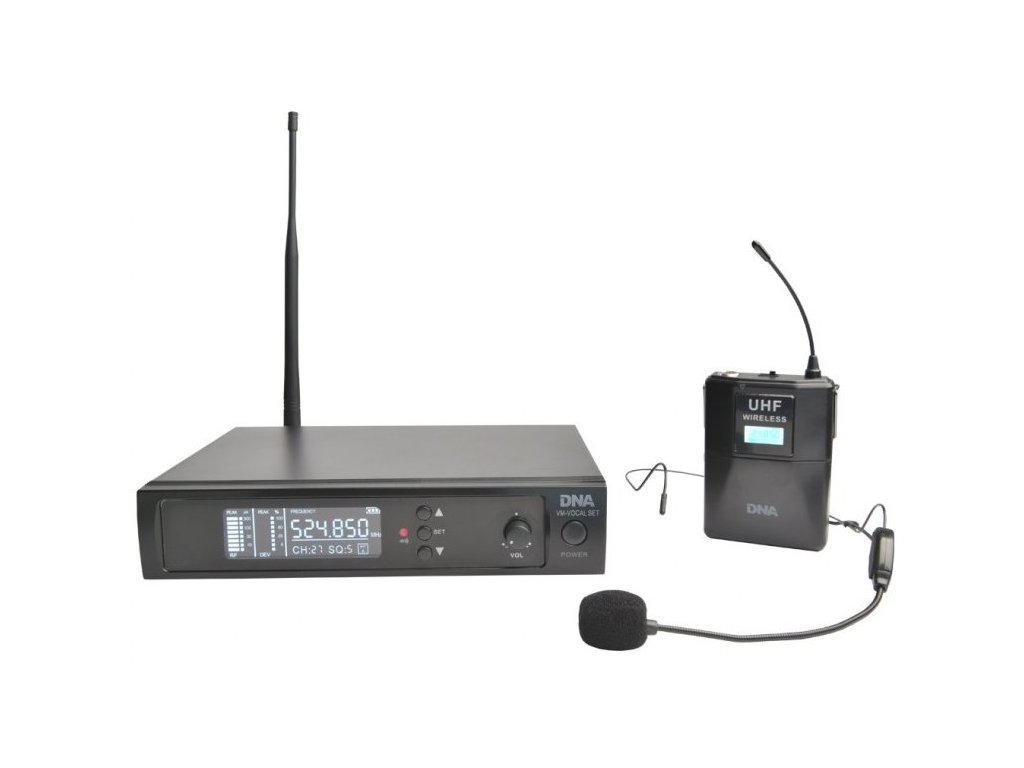 DNA VM-HEAD SET je vysoko kvalitný bezdrôtový mikrofónny systém založený na digitálnej technológii. Sada sa skladá z UHF prijímača, vysielača na zápästie (tzv. „Bodypad“) a mikrofónu umiestneného na hlave. Sada je ideálna pre malé koncerty a živé vystúpenia, počas akcií, na svadbách, rovnako ako pre prácu lektorov a mobilných DJov.