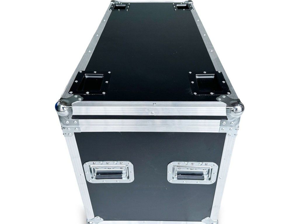 Kufor je vyrobený z hliníka a odolnej preglejky, čo zaisťuje plnú bezpečnosť prepravovanej techniky. Vnútro vyplnené technickou penou účinne tlmí vibrácie a chráni vybavenie pred poškriabaním. Toto riešenie ocenia najmä tí, ktorí často cestujú a potrebujú na pódiu bezporuchovú techniku.