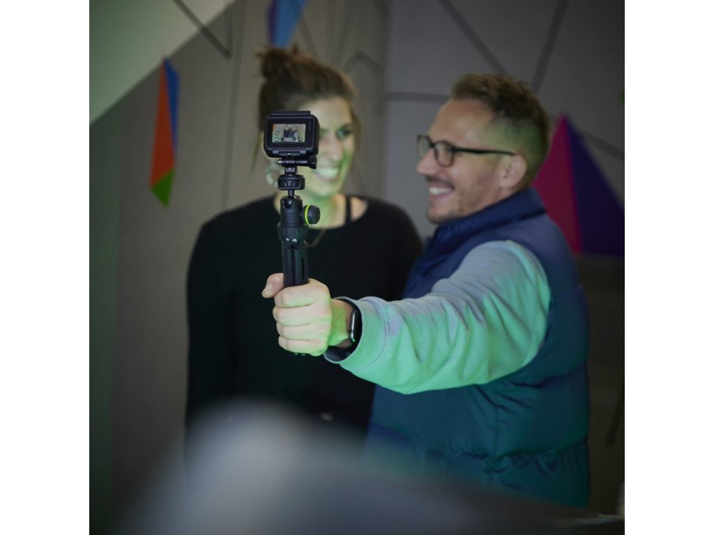 So stolným statívom Gravity mini získate mimoriadne kompaktného spoločníka, ktorý sa zložením zmestí do vrecka bundy a ponúka nespočetné množstvo možností použitia: ako stolný statív pre mobilné nahrávanie podcastov, ako flexibilnú tyč pre nahrávanie v teréne a akčné kamery, a dokonca ako nástavec pre plnohodnotné statívy.