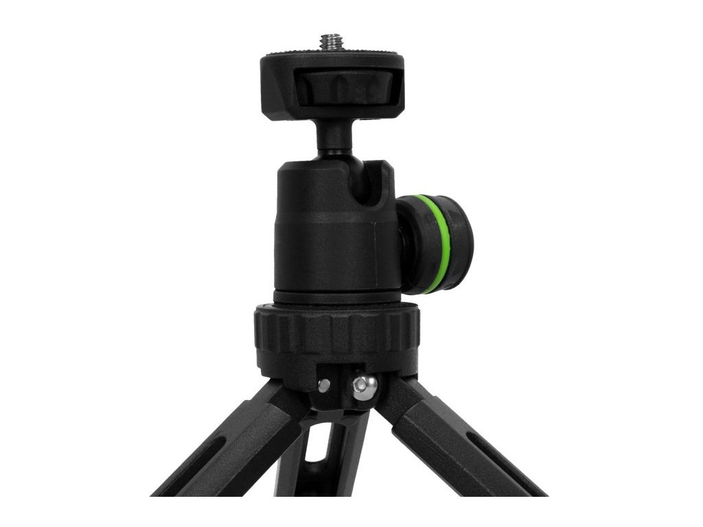 Stolný statív VS TRIPOD 01 B má na hornom konci guľovú hlavu so závitom ¼'' pre voľné nastavenie rekordérov, fotoaparátov alebo akčných kamier. Guľovú hlavu je možné sklopiť do strany až o 90°. Tri nohy statívu je možné výškovo nastaviť v štyroch krokoch pomocou nastavovacieho krúžku.