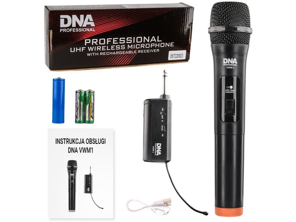 DNA VWM 1 je veľmi ľahko použiteľný bezdrôtový mikrofónny systém, ktorý obsahuje bezdrôtový dynamický mikrofón a malý kompaktný prijímač UHF, ktorý sa zapája priamo do zosilňovača alebo mixážneho pultu (6,35 mm jack). Sada pracuje v pásme UHF na frekvencii 220 - 280 MHz. Je ideálny pre uvádzačov, zabávačov alebo na karaoke, využitie nájde aj v rôznych typoch kultúrnych a vzdelávacích inštitúcií.