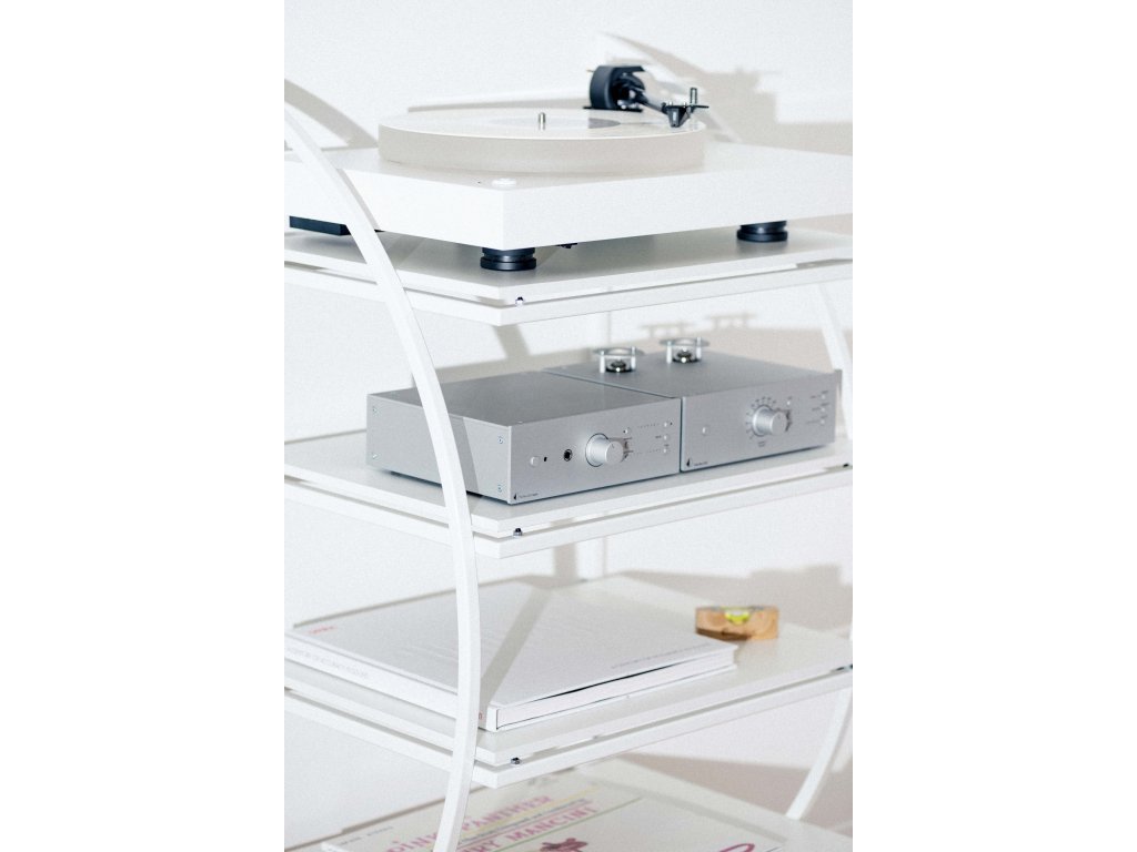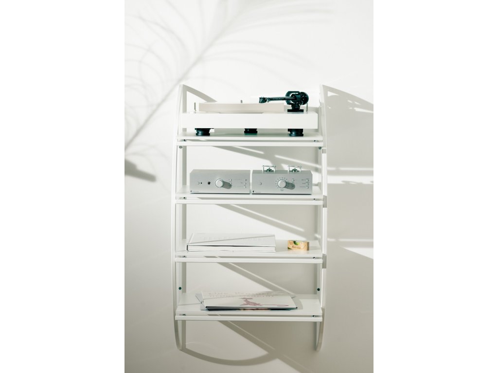 Dôsledne nakonfigurované materiály políc – špeciálne vybrané tuhé drevo nízkej hmotnosti s výškovo nastaviteľnými hrotmi poskytnú optimálnu podporu pre vaše Hi-Fi zariadenia. Výškovo nastaviteľné hroty na pevnej oceľovej konštrukcii umožňujú dokonalé vyváženie gramofónu a zároveň eliminujú väčšinu kročajových vibrácií pôsobiacich z okolia. Výsledkom bude čitateľnejší a presnejší zvuk.
