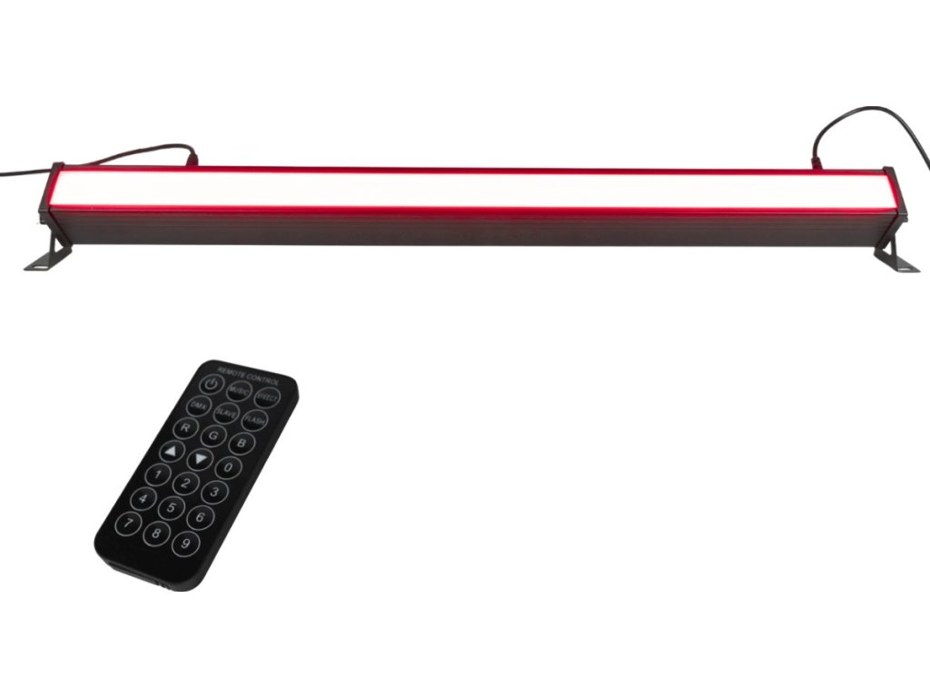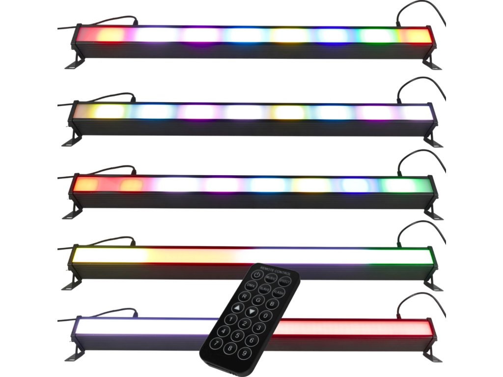 Máte k dispozícii až 7 režimov DMX kanálov (od 2 do 48 kanálov), čo umožňuje presné ovládanie osvetlenia aj v rozsiahlych inštaláciách. Lištu môžete navyše ovládať pomocou infračerveného diaľkového ovládača alebo spustiť automatický režim či režim Sound, ktorý reaguje na hudbu z okolia. Nastaviteľná citlivosť mikrofónu zaisťuje, že svetelné efekty budú dokonale zladené s tempom a rytmom skladby. Ovládací panel s prehľadným LED displejom a intuitívnymi tlačidlami zaručuje komfortnú obsluhu.