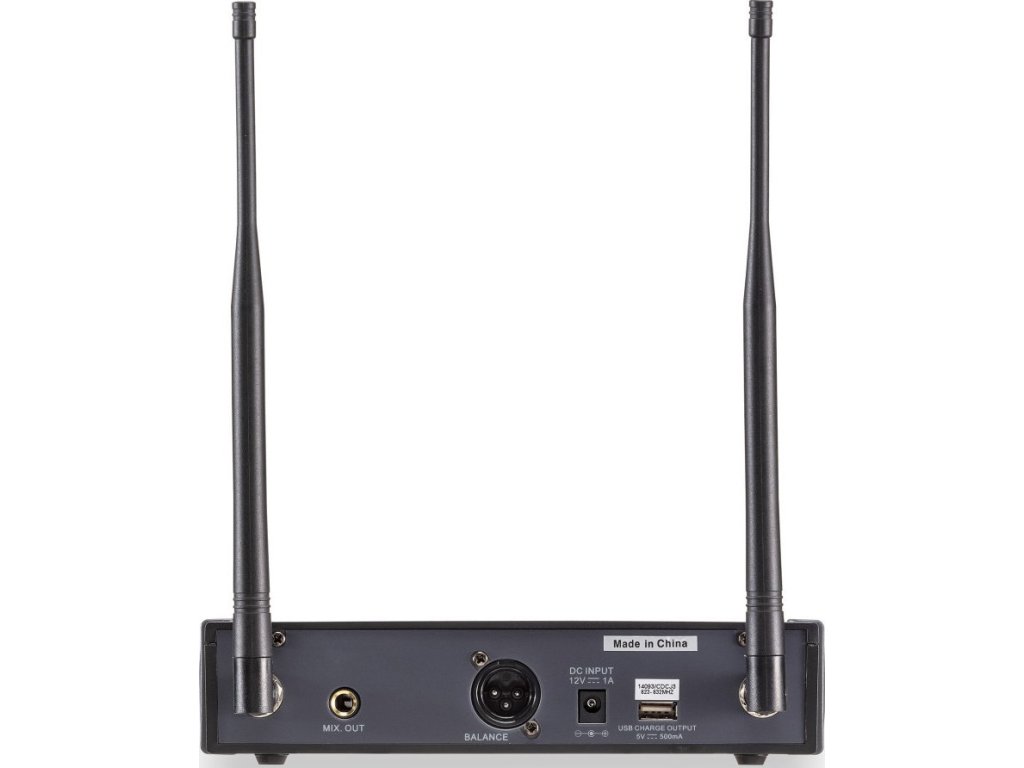 Súčasťou balenia je profesionálny ručný mikrofón s dynamickou kardioidnou kapsulou, ktorá zaručuje vysokú odolnosť proti spätnej väzbe a zreteľnú artikuláciu hlasu. Mikrofón je napájaný dobíjateľnou lítiovou batériou s možnosťou pohodlného nabíjania cez USB port na zadnom paneli prijímača. Ideálna pracovná vzdialenosť je až 50 metrov bez prekážok.