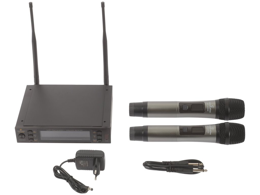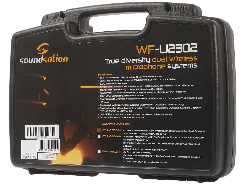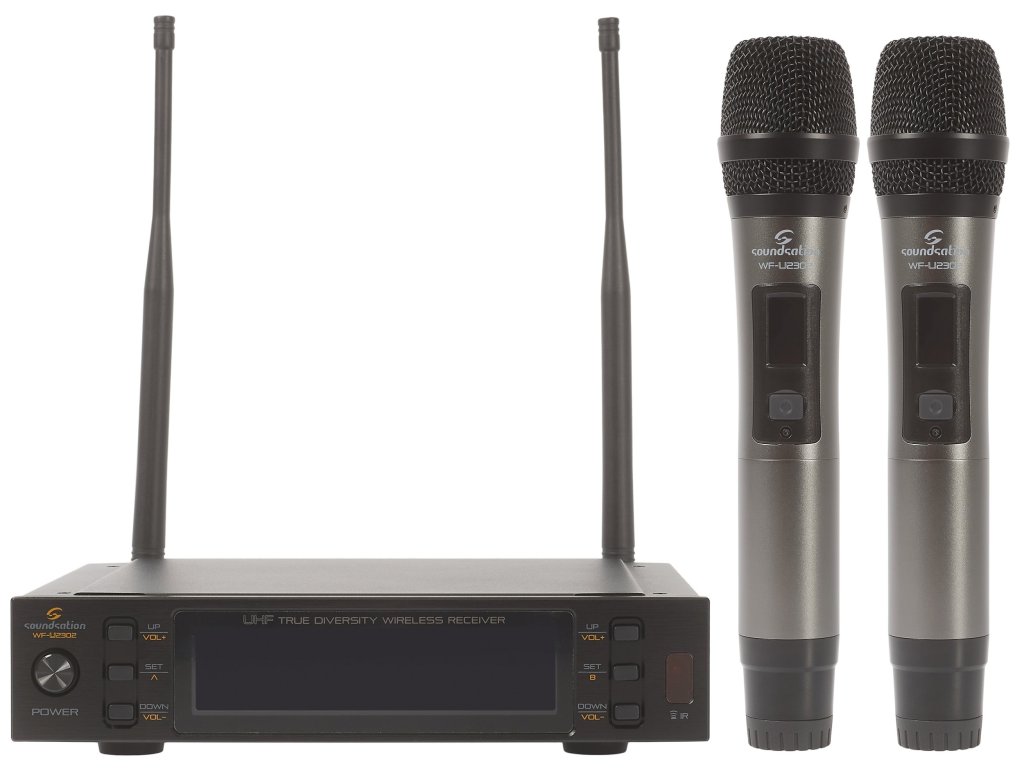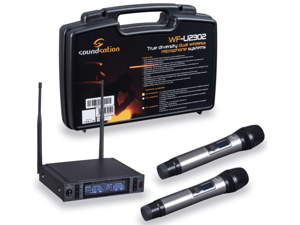 Soundsation WF-U2302HH je duálny profesionálny bezdrôtový set, ktorý tvorí dva handheld dynamické mikrofóny v podobe vysielačov a True Diversity UHF prijímač s 300 kanálmi pre každý mikrofón a jednoduchým, intuitívnym užívateľským rozhraním.