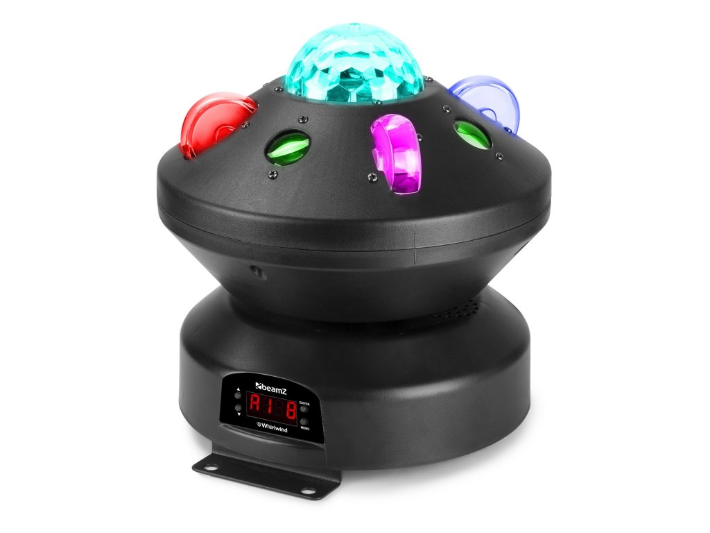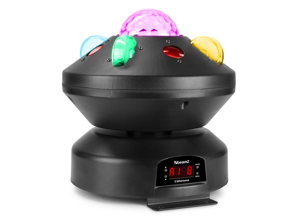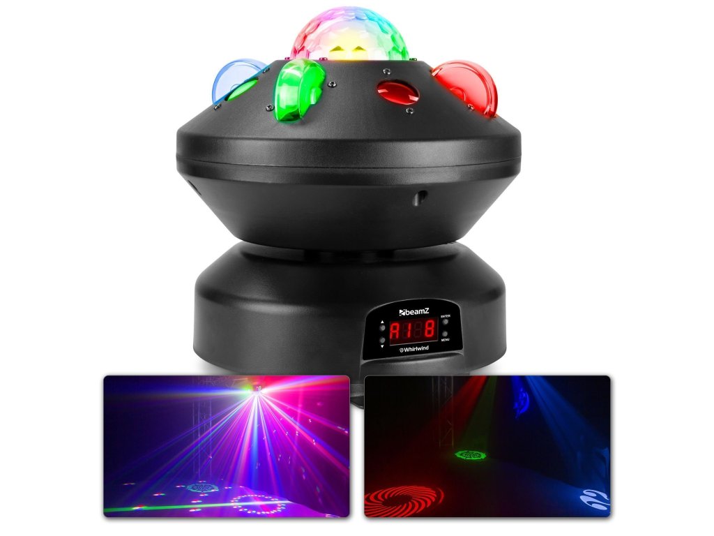 Whirlwind je veľkolepý svetelný efekt 3 v 1 vypĺňajúci priestor s nekonečnou rotáciou v oboch smeroch. Tento kompaktný univerzálny stroj je vybavený 4 rolovacími LED pruhmi, 4 projektormi GOBO a výkonnou guľou Jelly Ball. Prostredníctvom DMX môžete nastaviť ktorýkoľvek z troch efektov, ktoré používate na vytvorenie vlastnej atmosféry, alebo môžete použiť predprogramované show alebo zvukovú aktiváciu pre hotovú oslnivú svetelnú show. Ideálne pre krčmy, kluby a mobilných zabávačov, ktorí chcú vytvoriť viac efektov v jednej svetelnej show, bez toho, aby museli používať viac svietidiel. Dodávané s držiakom a IR diaľkovým ovládaním.