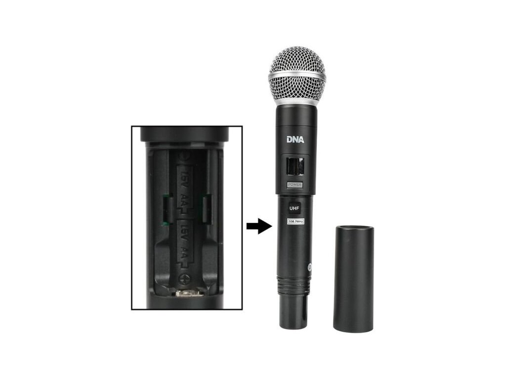 Každý ručný mikrofón je vybavený pohodlným vypínačom, infračerveným prijímačom pre jednoduché spárovanie mikrofónu so základňovou stanicou a prehľadným displejom LCD zobrazujúcim aktuálny kanál a frekvenciu vysielača. Súčasťou balenia sú aj dva náhlavné mikrofóny s praktickými bodypack vysielačmi, ktoré sa veľmi ľahko ovládajú. Napájanie zaisťujú dve batérie AA, ktoré umožňujú vysielačom pracovať bezdrôtovo s prijímačom až 8 hodín.