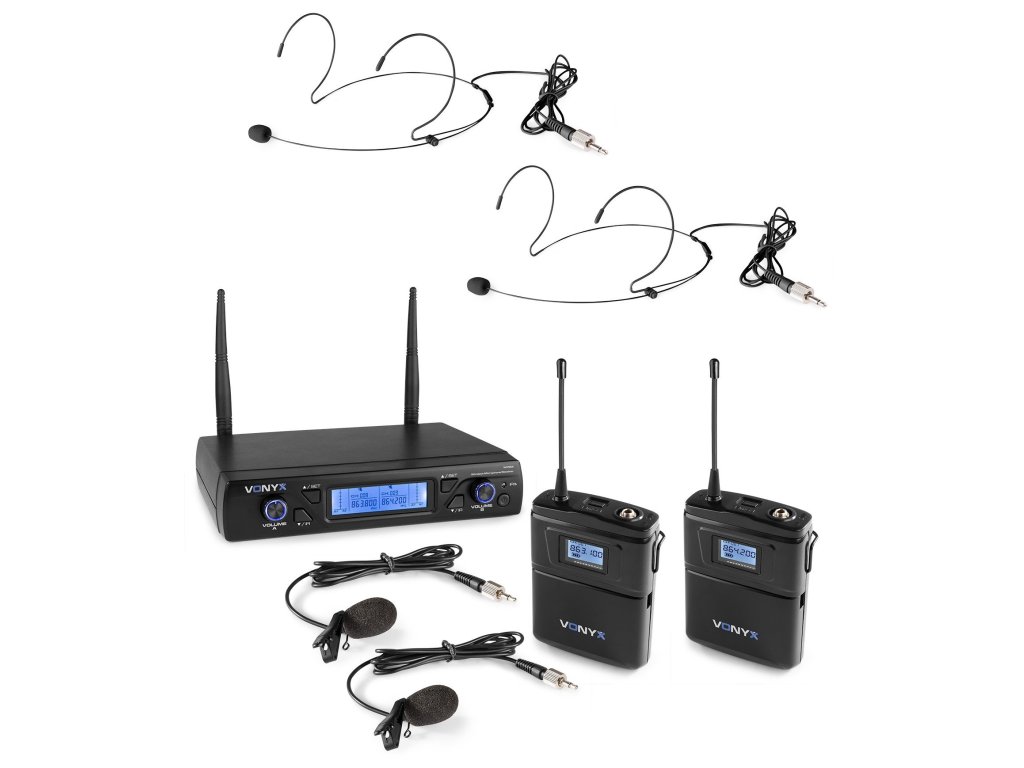 - Súprava duálneho prijímača s 2 bodypack vysielačmi, náhlavnými a klopovými mikrofónmi