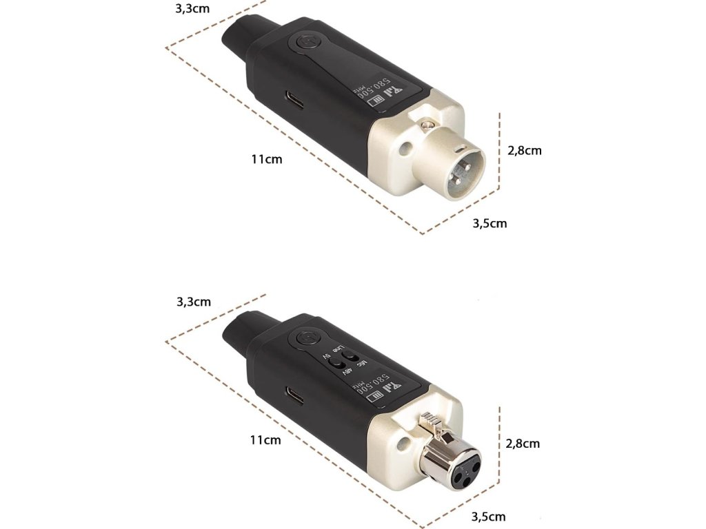 - Rozmery vysielača/prijímača: 11 x 3,5 x 2,8 cm