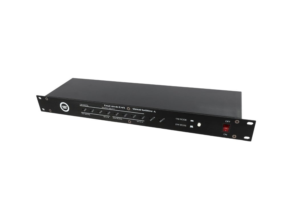 LIGHT4ME XSPLIT 2x4 je profesionálny DMX signálový rozbočovač, ktorý kombinuje dva prevádzkové režimy – 2x4 a 1x8 – kompaktný dizajn a výnimočnú odolnosť vďaka železnému šasi a hliníkovému prednému panelu v elegantnej čiernej farbe. Zariadenie váži iba 1,8 kg a má rozmery 48,3 x 12,5 x 4,5 cm, vďaka čomu sa ľahko inštaluje, skladuje a prepravuje. S montážnymi otvormi pre 19" 1U rack je inštalácia na mieste použitia rýchla a bezproblémová. Je to ideálne riešenie pre profesionálov aj nadšencov, ktorí ocenia odolnosť a funkčnosť v každom detaile.