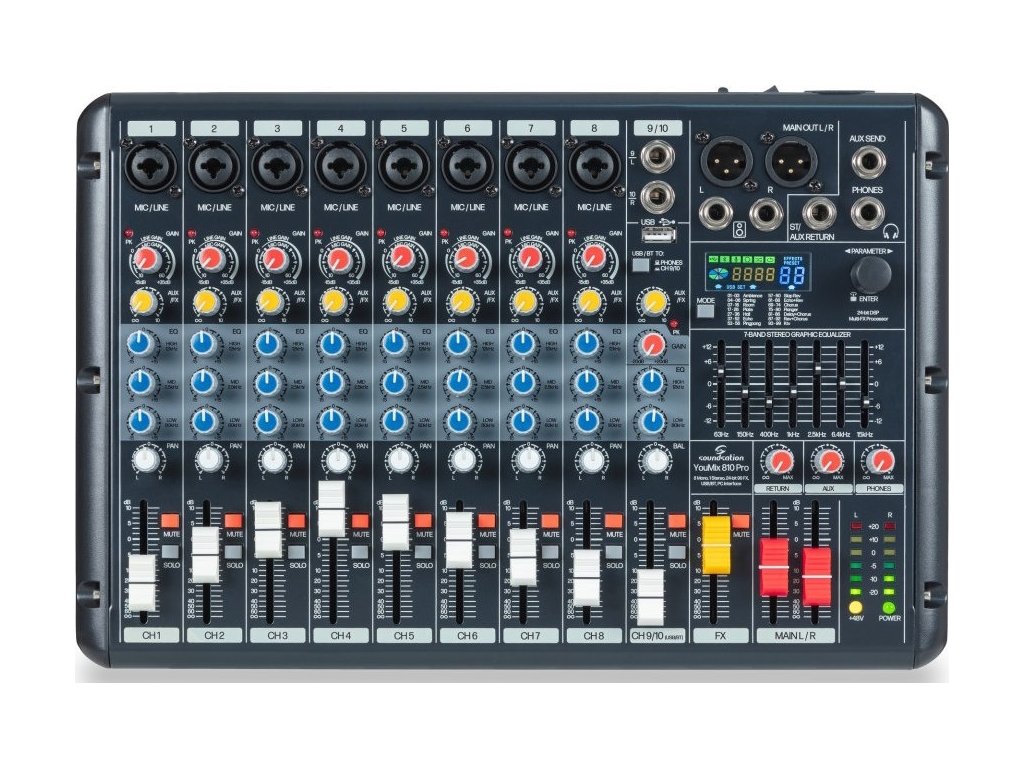 Celý systém je navrhnutý s dôrazom na intuitívne ovládanie a rýchle nasadenie, čo zaisťuje plynulý priebeh každej akcie. YOUMIX 810 PRO predstavuje najvýkonnejší a najkomplexnejší kompaktný mixážny pult s USB, Bluetooth a vstavanými efektmi v ponuke Soundsation.