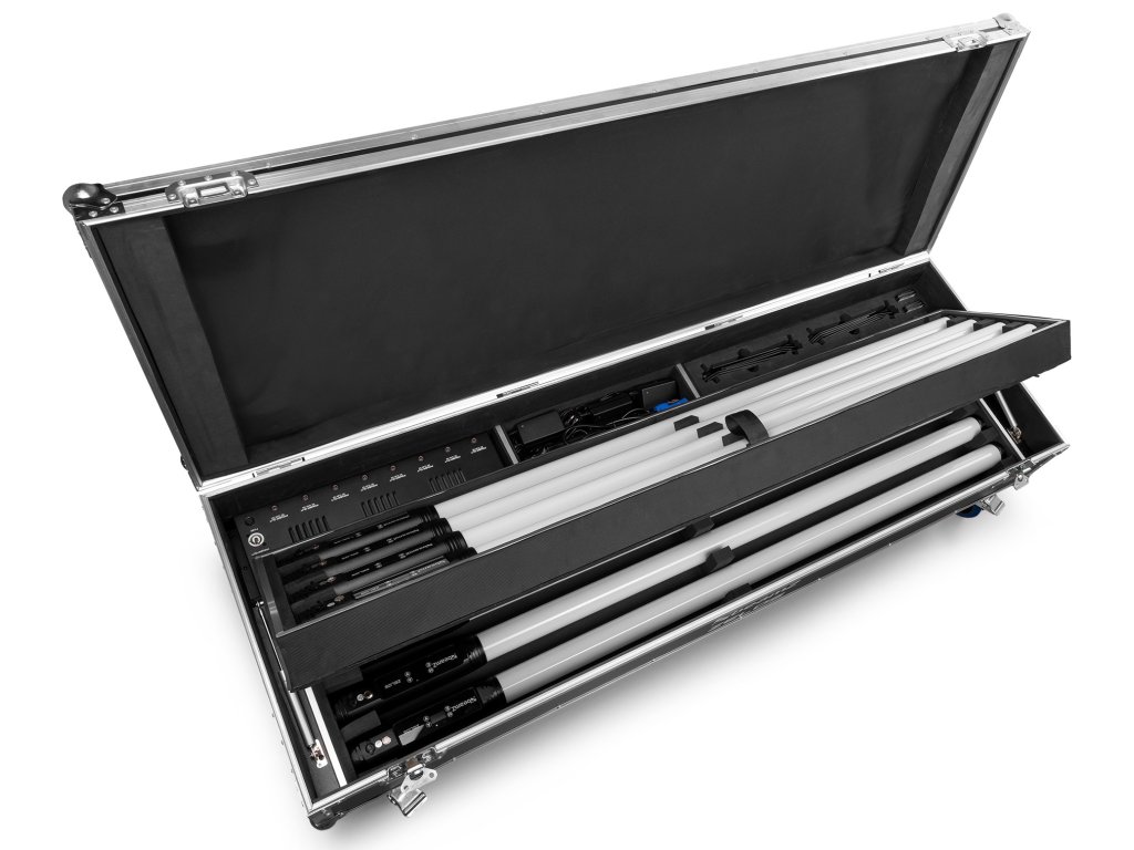 Sada Zelos Tube Kit sa dodáva s 8 trubicami LED Zelos a všetkým potrebným príslušenstvom, ktoré potrebujete pre ďalšie fotografovanie alebo udalosť, či už v interiéri alebo exteriéri. To všetko je uložené v odolnom ochrannom kufri s nabíjacím systémom, ktorý je navyše vybavený kolieskami a držadlami pre ľahkú prepravu.
